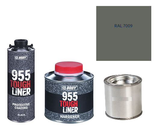 HB BODY 955 RAPTOR Tough Liner – 2K-Polyurethan-Texturset / Basis + Härter + Farbe / RAL 7009 900 ml