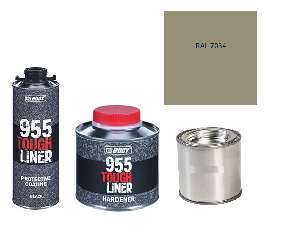 HB BODY 955 RAPTOR Tough Liner – 2K-Polyurethan-Texturset / Basis + Härter + Farbe / RAL 7034 900 ml