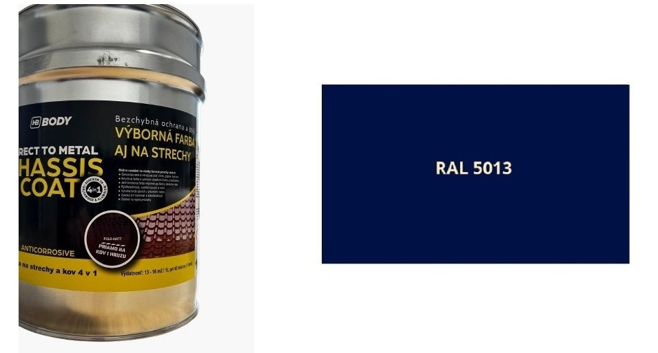 4 in 1 Dachfarbe. Es verfügt über eine ausgezeichnete Korrosionsbeständigkeit. Es trocknet schnell und ist in erster Linie zum Beschichten aller Metallkonstruktionen, Dächer, Metallbauteile, Zäune, Aluminium, Zink, Kohlenstoffstahl und Fahrzeugchassis gedacht. Auch beständig gegen Kraftstoffe. Ergiebigkeit: 13–16 m²/1 l. Trocknung: 30–45 Min. Auftragen: mit Pinsel, Rolle, Spritzpistole. Verdünnung: HB BODY 767