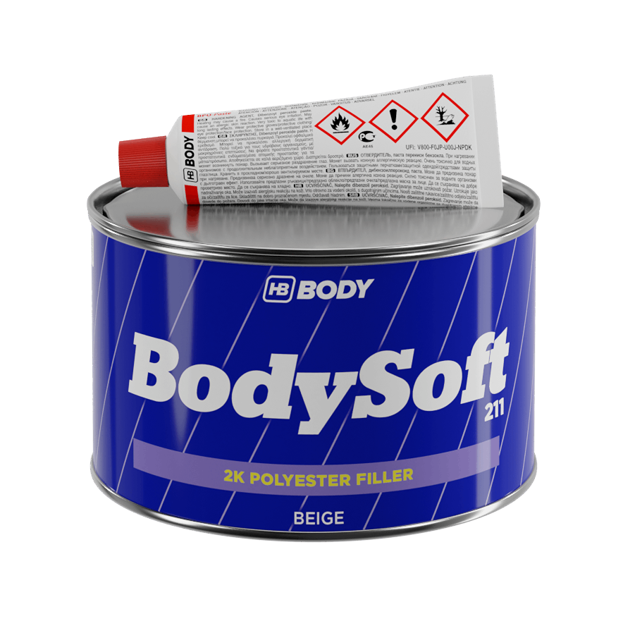 2K-Polyesterspachtel, geeignet für Metall-, Holz- und Polyesteroberflächen. Ein klassischer Karosseriefüller, der schnell trocknet und leicht mit Schleifpapier der Körnung P100 - P240 geschliffen werden kann, um ein perfektes, porenfreies Finish zu erzielen.